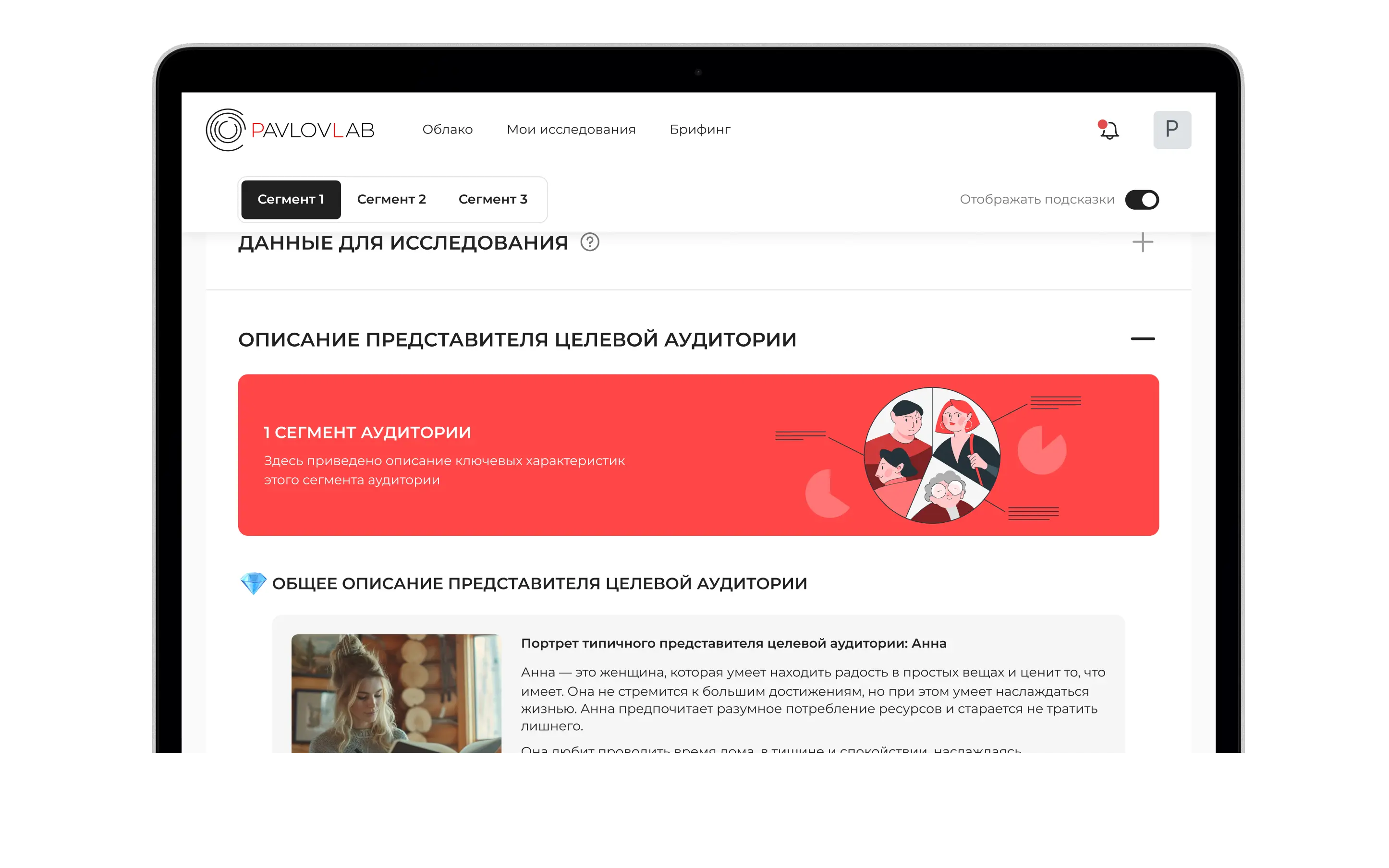 Через пару минут анализ будет готов, и ты получишь описание трех сегментов целевой аудитории, которым твои материалы зайдут на ура. Там же будут рекомендации для улучшения маркетинговых коммуникаций